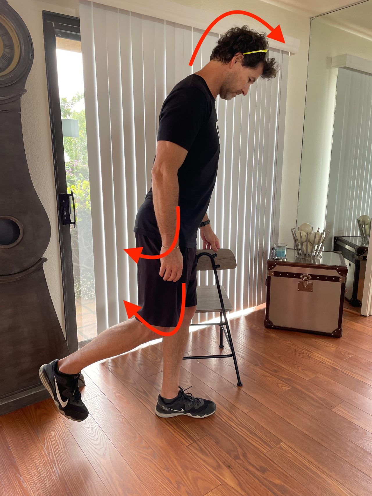 3. Hip extension + knee flexion + neck flexion