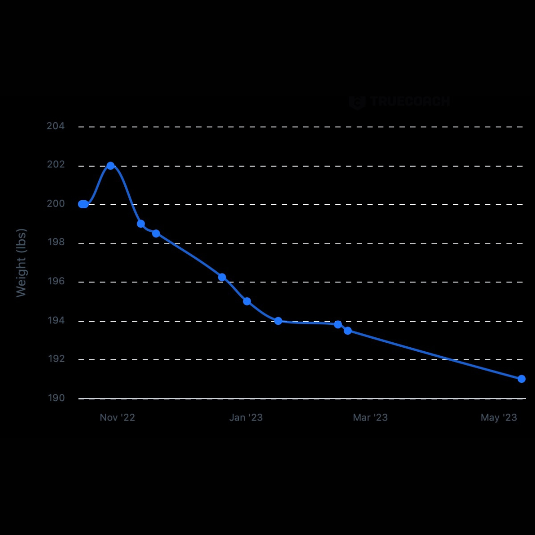 He lost 11 pounds in 6 months. This corresponds to our famous 5% weight loss.